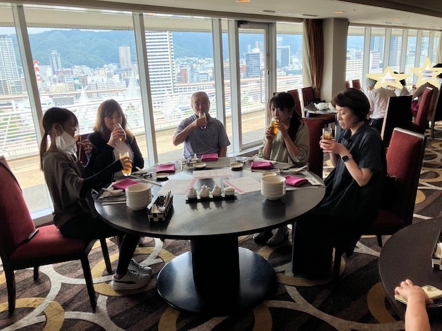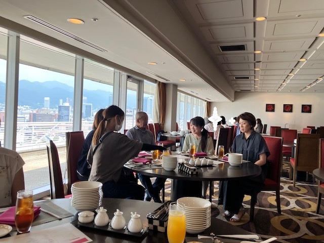 悔いの残らないようシミュレーション済みという「グルメ上級者」の職員さんが参加者を導きます。下調べを制するものがバイキングを制する―。14階からの眺望は二の次で、限られた時間内に最大限の満足を得る、まさに食の攻略でした!(^^)!