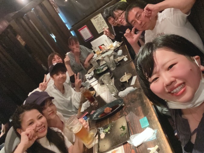会場は仕事終わりに気軽に集合できる駅前居酒屋。部署の垣根を越えた交流が実現しました。生ビールやジュースを飲みながら、普段は話す機会の少ないメンバーとも語り合いました。新入職員さんも、普段クールな職員さんも一人ひとりが「みんなで楽しむぞ!」という気持ちをもったひとときでした。意気投合した一行は、二次会でカラオケに突入するほどの盛り上がりぶり。「終電を逃してしまった(*_*;」という職員さんも。