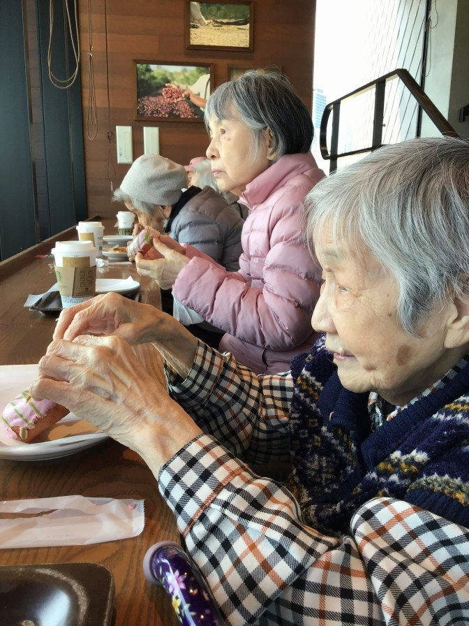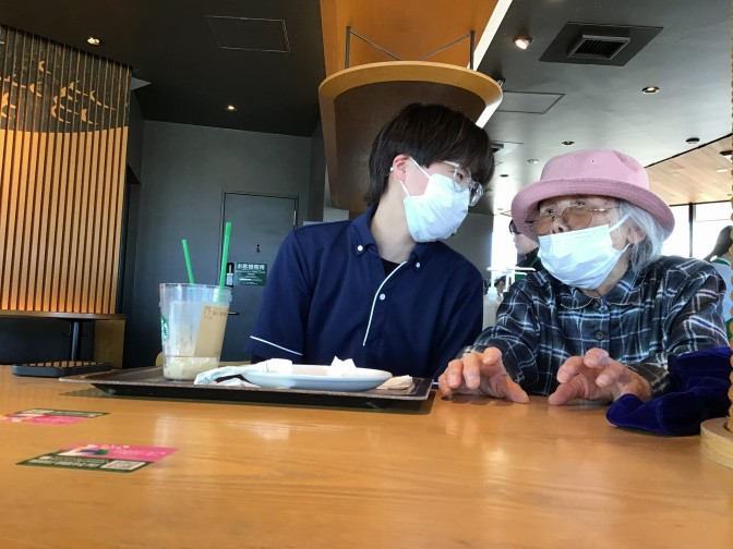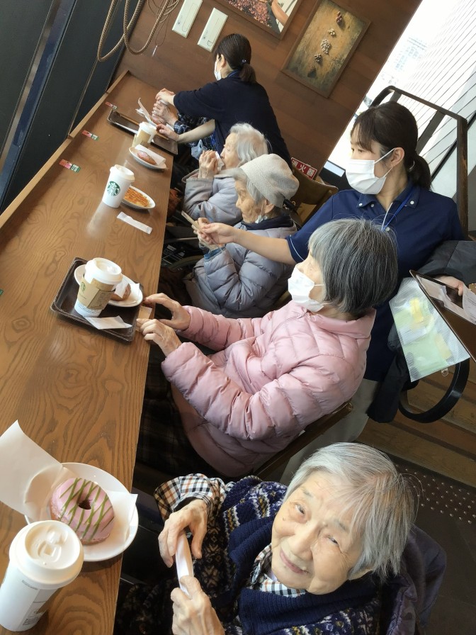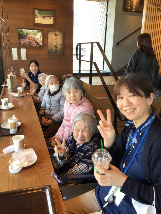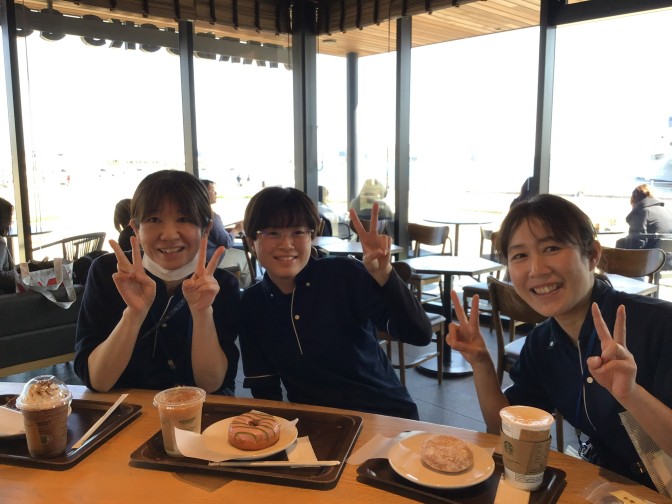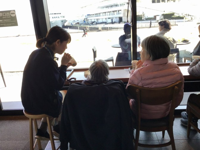 「外の景色を見ながら飲むコーヒーって、なんでこんなにおいしいんやろね」とみなさんお好きなドリンクを手にゆったりとして時間を過ごし、笑顔あふれるひとときとなりました。