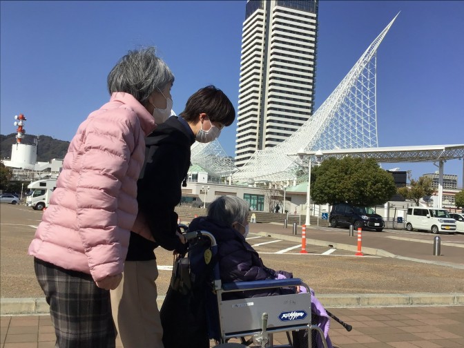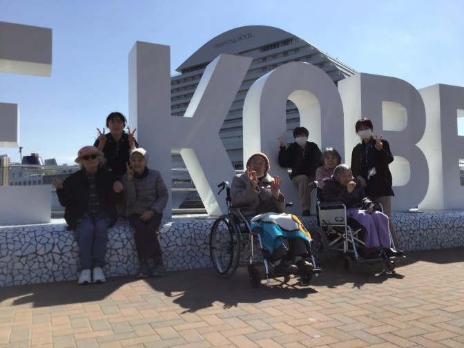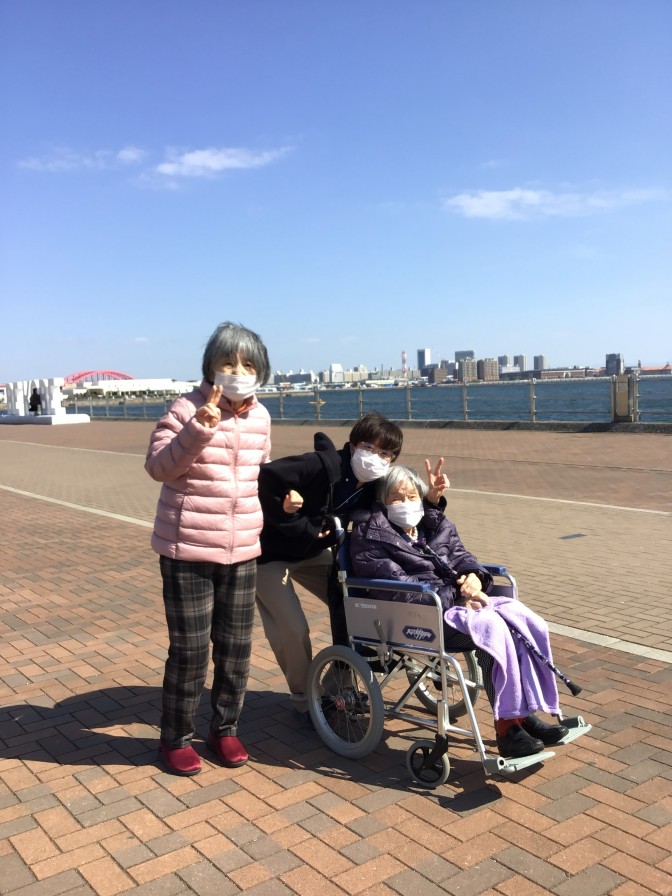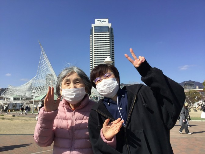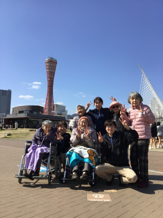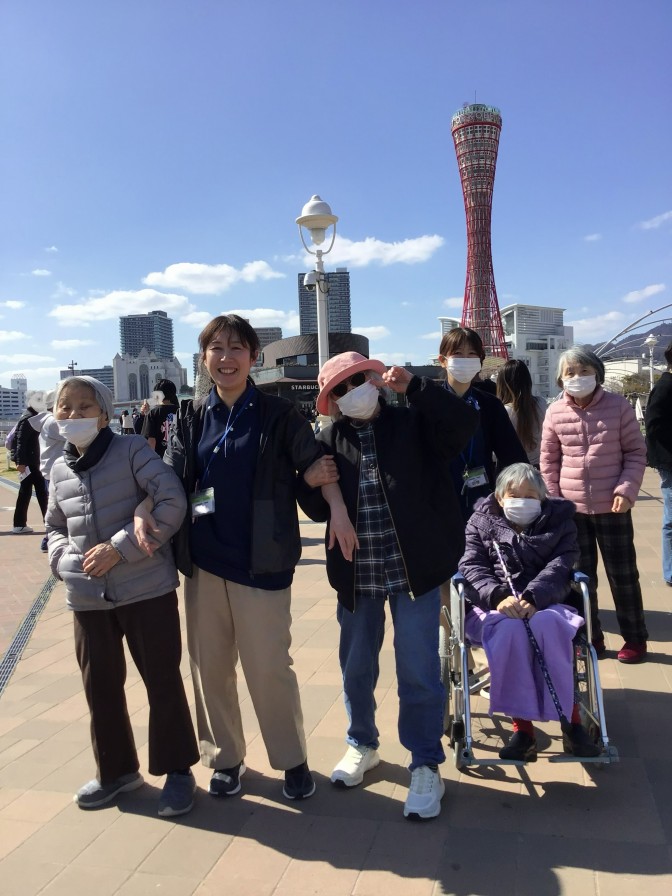 メリケンパークに到着すると、広い空と海が目の前に広がり「わぁ、ええ景色やねぇ」とご利用者さんの声が自然とこぼれました。