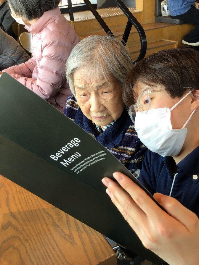 メニューを見ながら「なんや、色々あるんやねぇ」「どれにしようか」と職員さんたちと相談しながら選ぶ時間もまた楽しい時間です。