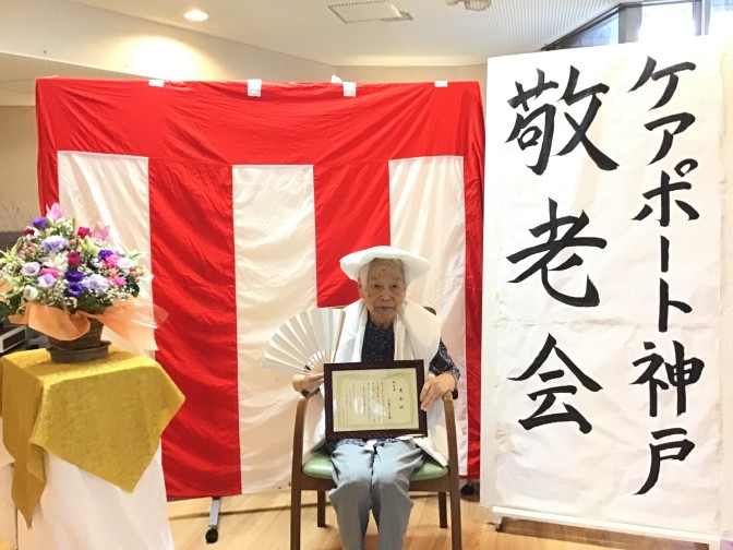 9月15日 敬老会を行いました。 節目のお祝いをさせていただく方が20名おられました。 おめでとうございます! 99歳白寿のお祝いをさせていただきました。 大正14年のお生まれで、11月には100歳を迎えられます! これからもお元気でデイサービス、ショートステイに通ってくださいね!! 皆様がお元気で敬老の日を迎えられたことお祝い申し上げます。 これからも皆さんが笑顔になられるようお手伝いさせてくださいね!
