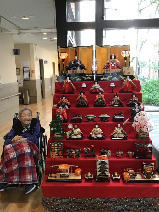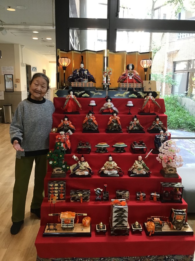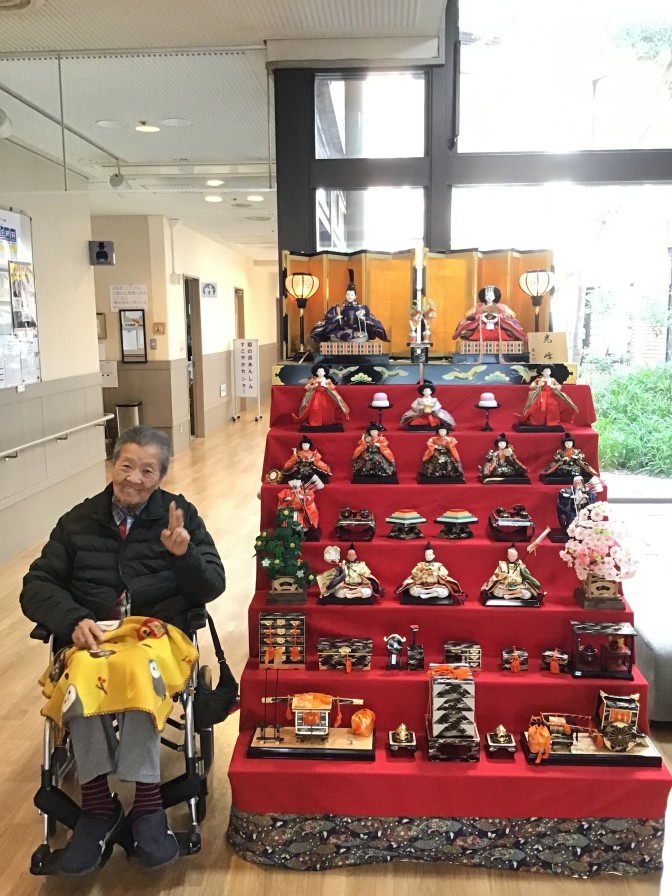 ケアポート神戸ではひな祭りに合わせて七段飾りのお雛様を飾りました。