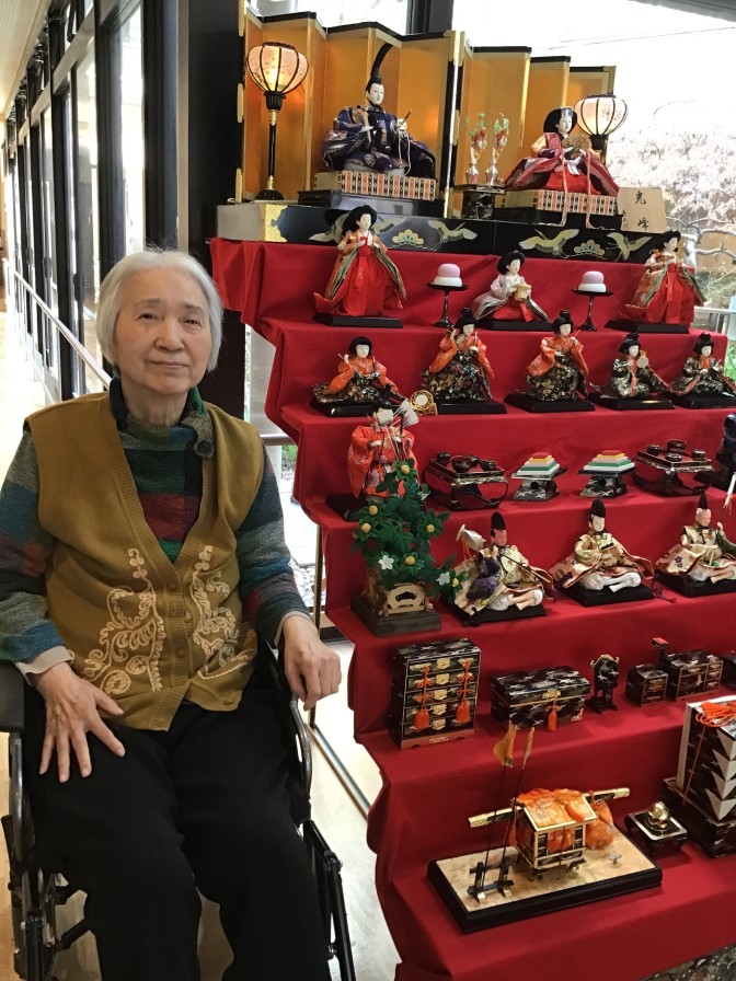 華やかなひな人形を見て、「立派ね」「昔は家にもあったのよ」など