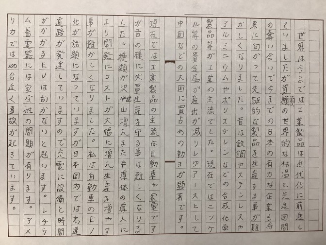 ひよどりホームの3階ユニット入居者様"T先生"の作品 第7回です‼ 今回の作品は、 資源の枯渇が問題視されている事に言及し、それに伴いEV車が普及されて行く事への不安感が綴られています。今回もかなり広い視野で物事を見られているT先生でした。 皆さまもぜひ読んでみてください‼ 次回のT先生の作品もお楽しみに~(^^)/~~~