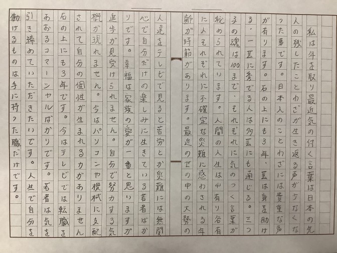 ひよどりホームの3階ユニット入居者様"T先生"の作品 第14回です‼ 今回の作品は、 昔の在り方、今の在り方、昔の暮らし、今の暮らし 生活様式も価値観も変化してきています。そのことについてT先生も色々と 考えることがあるのでしょう。温故知新、私の好きな言葉ですが大事にしていきたいですね。 皆さまもぜひ読んでみてください!! 次回のT先生の作品もお楽しみに~(^^)/~~~