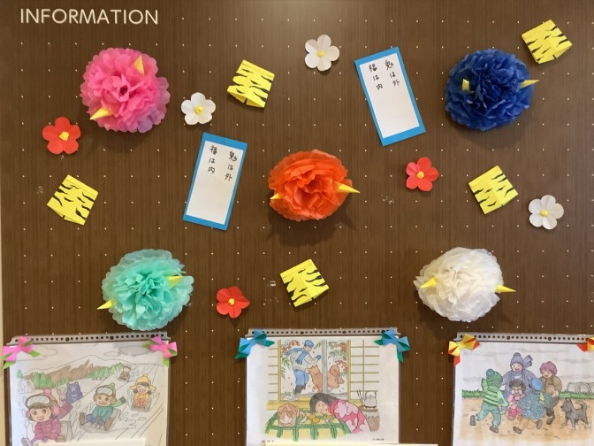 ひよどりホーム職員が折り紙や画用紙でバレンタインや節分の飾りを作成してくれました。 立体的な飾りでユニット内の雰囲気が一気に華やかに!! ご利用者の方々が少しでも季節を感じることが出来ると嬉しいですね(o^―^o)ニコ