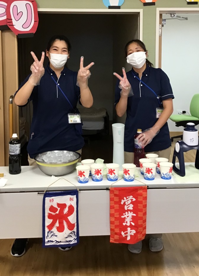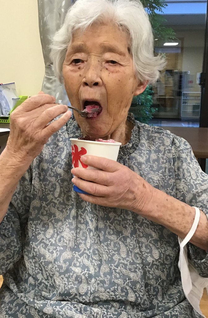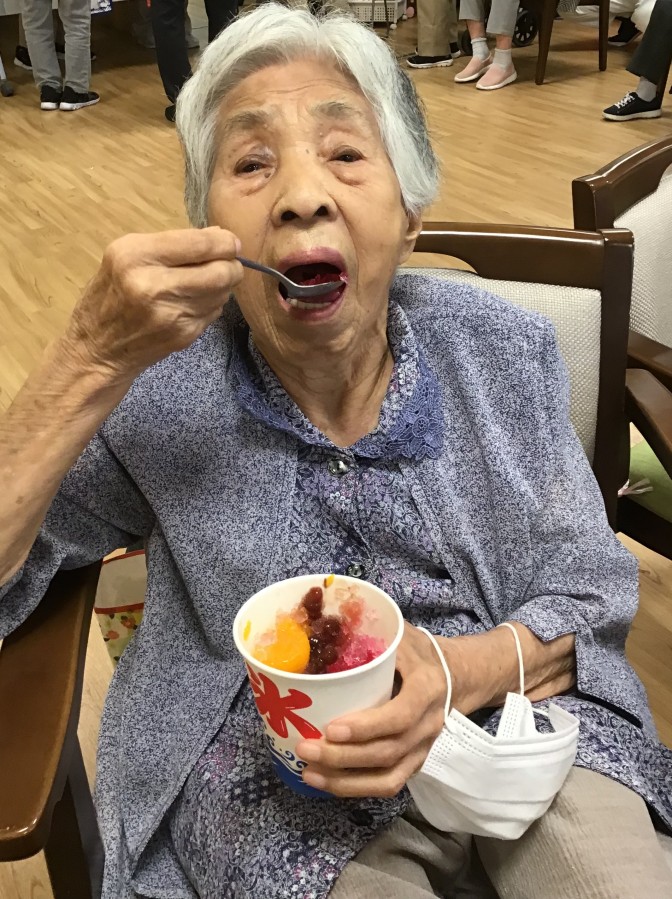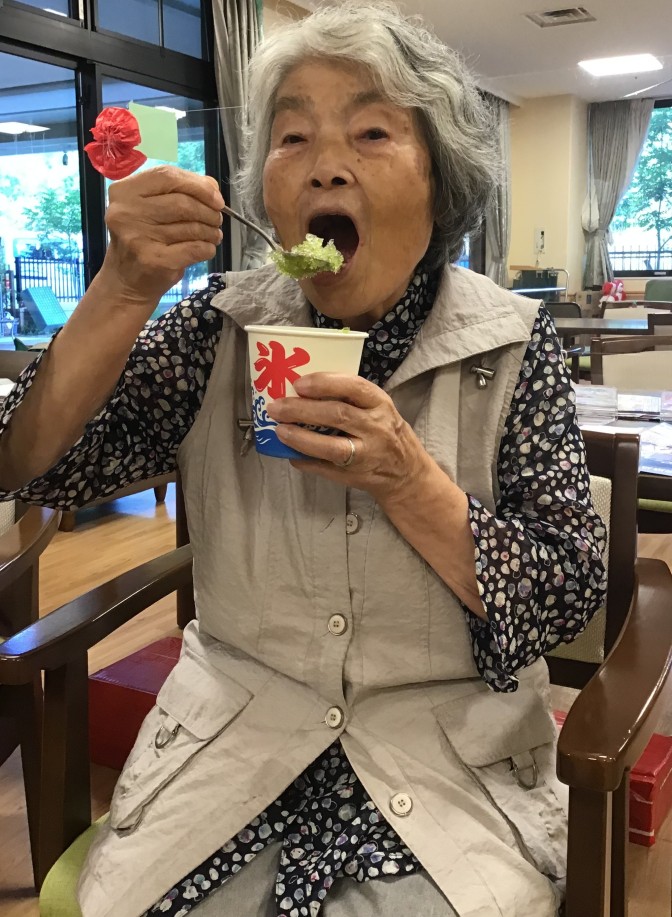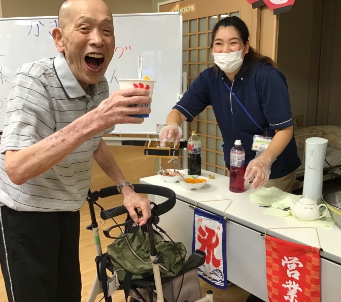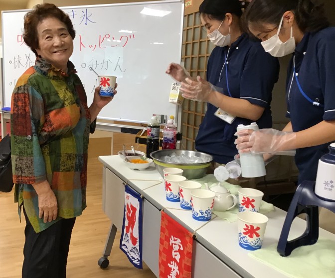 夏といえば・・・かき氷! 暑くてたまらない夏に、みんなで本格かき氷を食べました! 職員も張り切って作りました(^▽^)/ みかんと小豆のトッピングを添えて、お好きなかき氷を召し上がれました♪ みなさんぺろりと召し上がられました(^▽^)/ 最後に施設長と素敵な笑顔でピーース! とても楽しかったです(^▽^)/