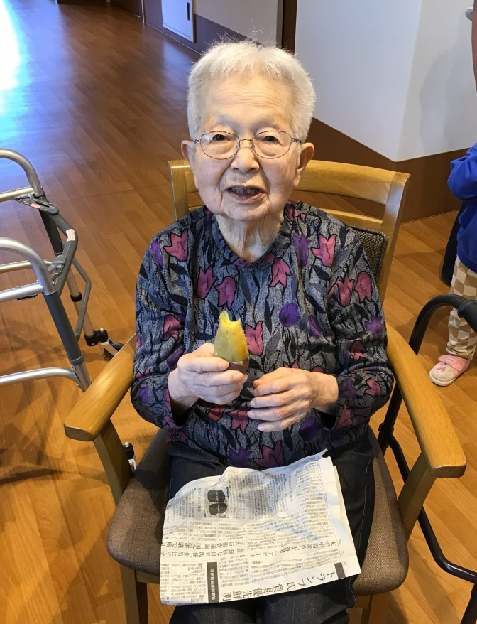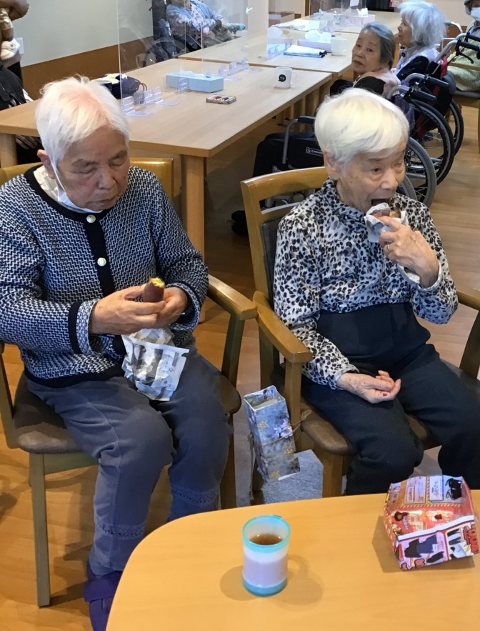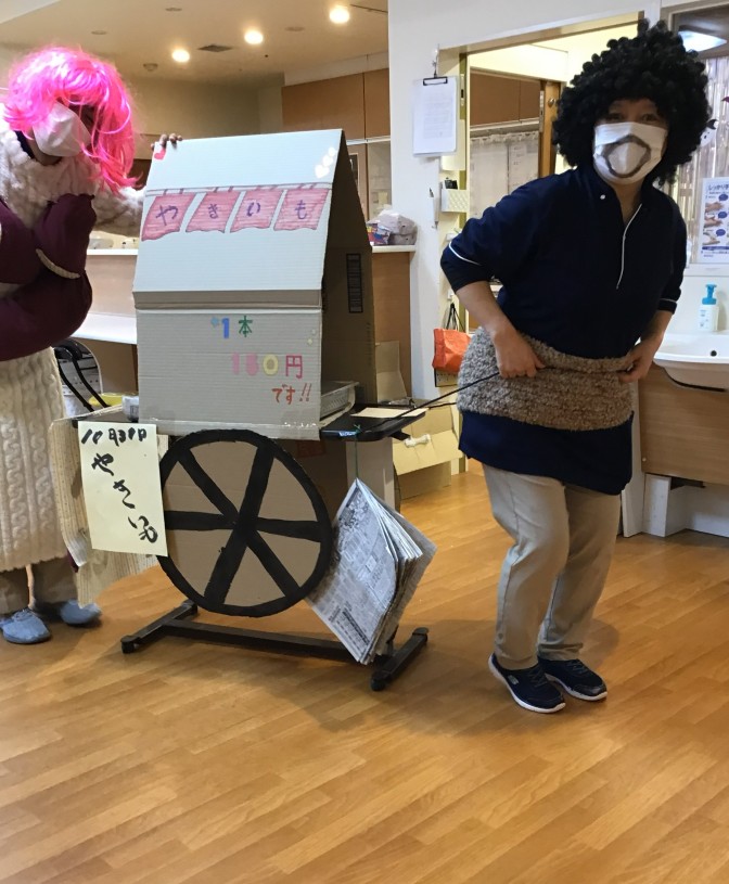 冬の風物詩でおなじみの「いーしーやぁーきいもー。おいもー」という掛け声聞いたことありませんか? 屋台の石焼き芋屋さんです(*^▽^*) 屋台に熱々の焼き芋をのせてよく売りに来られますよね。その屋台がなんとショートステイへやってきました。 ご利用者様も聞いたことある声!焼き芋屋さんや!と言われほくほくの焼き芋を召し上がっておられました。 次回のレクもお楽しみに!