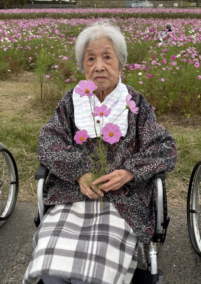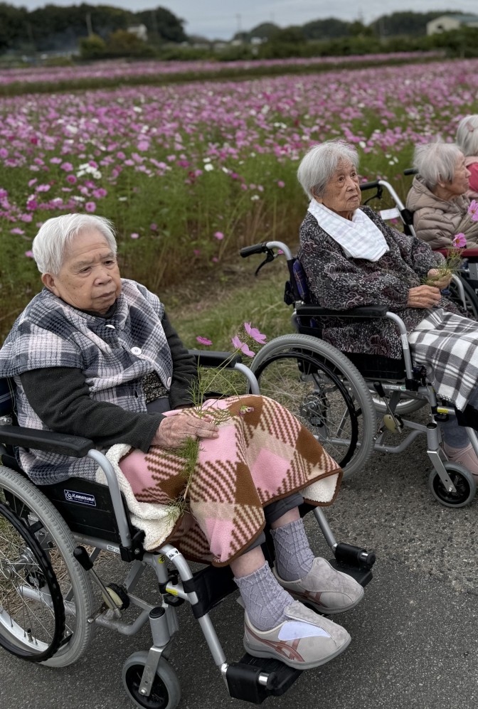 11月の暖かい日特養 萩・藤では 小野市ひまわりの丘公園へ コスモスドライブへ行ってきました!(^^)! 皆さん、コスモスを手にハイチーズ いっぱいのコスモスと華やかな色に心がウキウキ♪ とても心癒されました。 来年も楽しみに(^_-)-☆