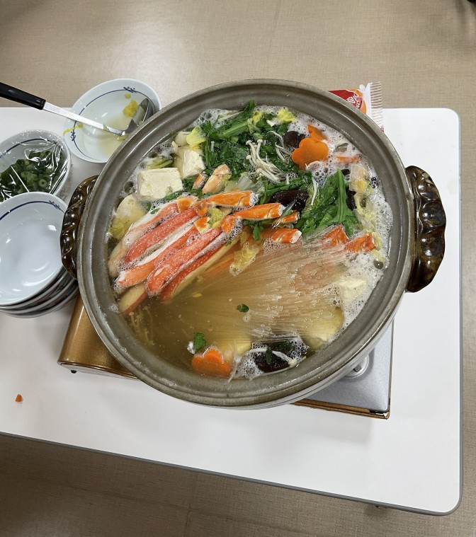 サ高住では1月に国安神社に初詣に行ってきました☺実際にお賽銭を入れお参りして頂きました。皆様それぞれが願われた願い事が叶いますように♡そして今年も素敵な1年となりますように♡ またお食事レクでは去年に続き今年もカニ鍋をしました!! 皆様の幸せそうな笑顔がたくさん見られました☺♡