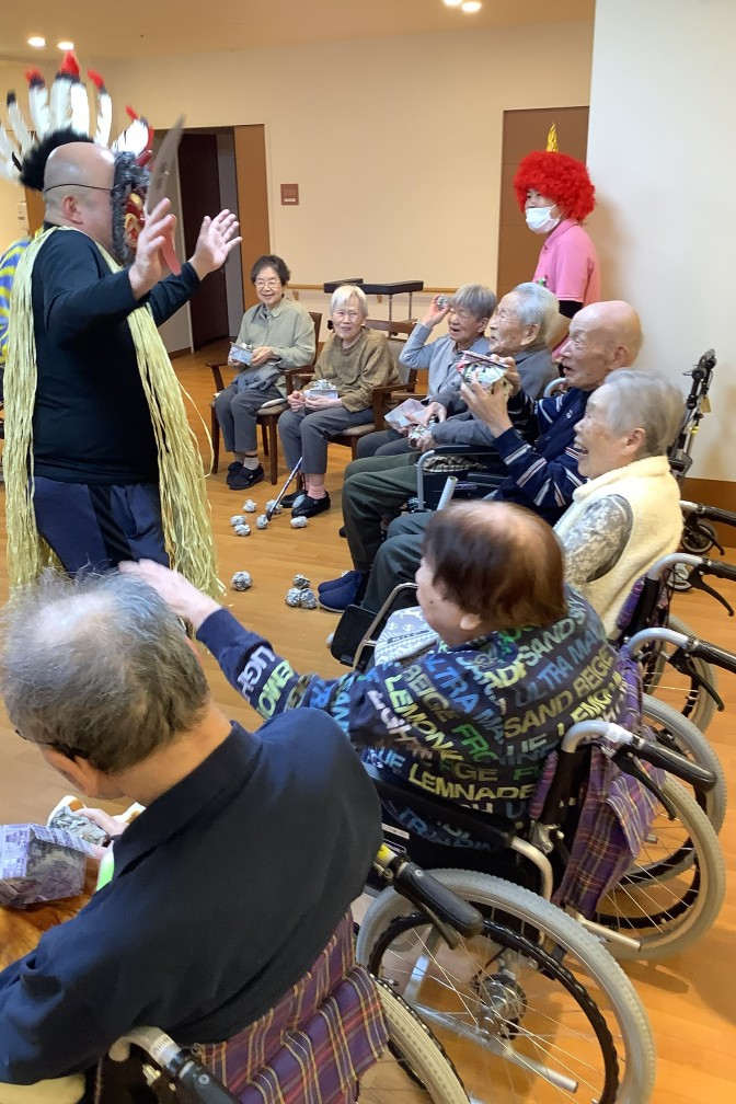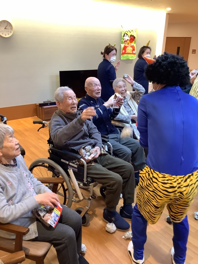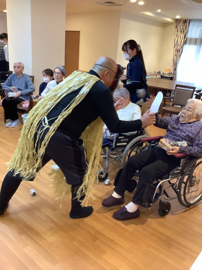 今年もあっという間に2月!!2月3日は節分!今年も楓菫ユニットにも、鬼がやってきました。ご利用者様皆さんで、鬼は外!福は内!怖がりながらも、一生懸命皆さんで投げれおられました(笑) 今年も皆さんに福が訪れますように(^▽^)