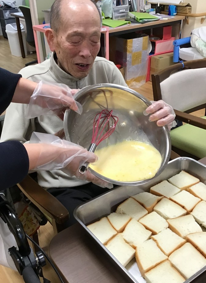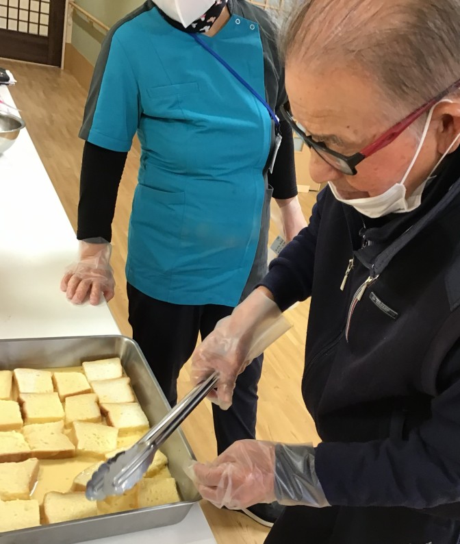 3月はホワイトデーがあるということで… デイサービスでフレンチトーストのおやつレクリエーションを行いました(^▽^)/ 皆様にお手伝いいただきおいしく出来上がりました(^▽^)/ 4月は匠大公園へお花見を予定しております(^▽^)/ 温かくなってきたのでお出かけが楽しみな季節になりましたね。 来月のレクリエーションもお楽しみに(^▽^)/