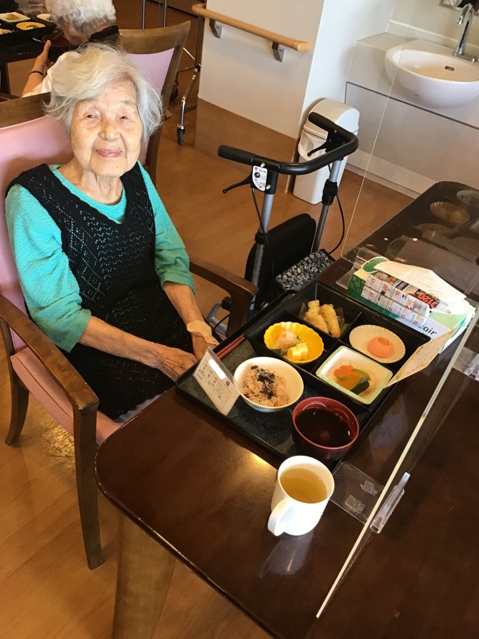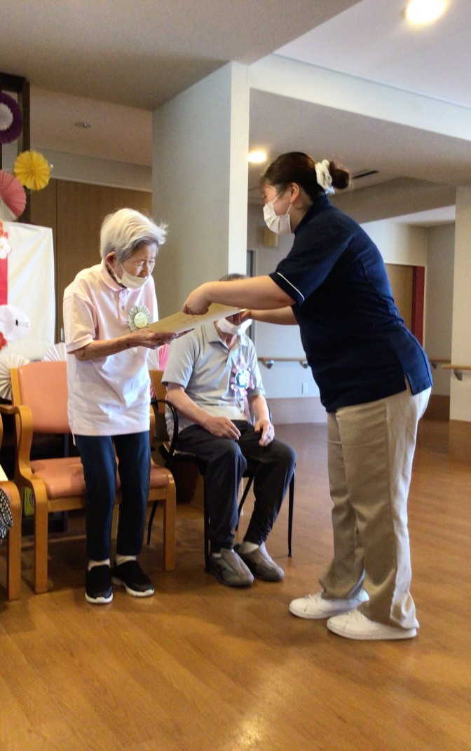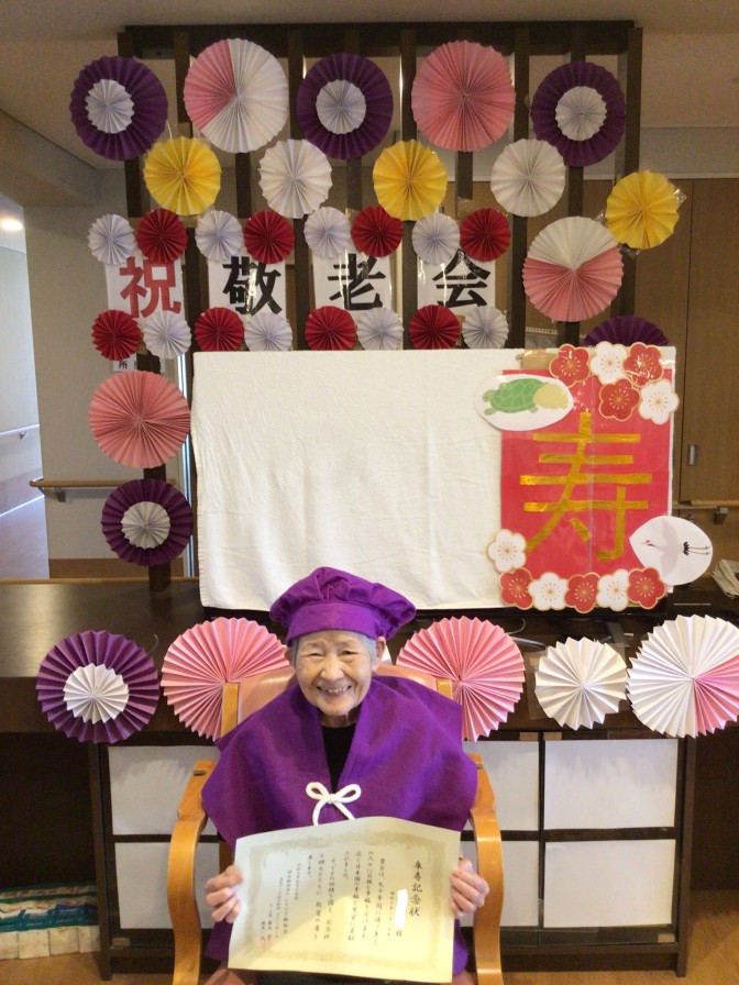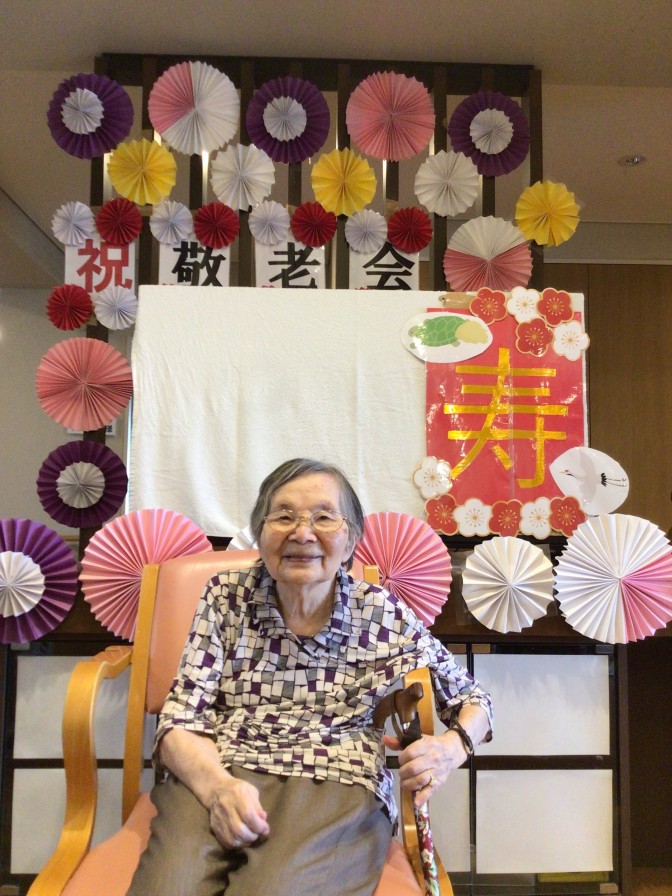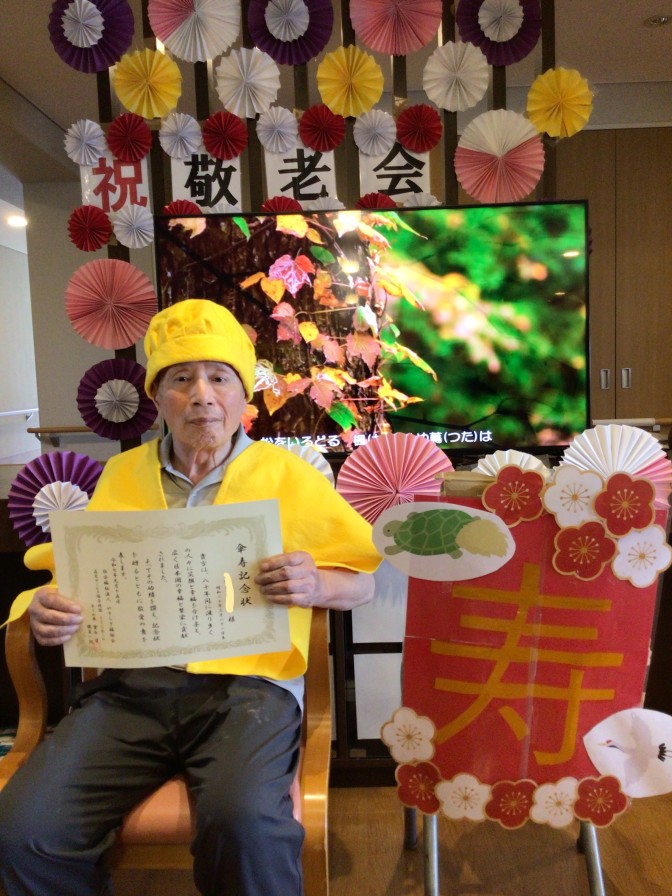 9/15の敬老の日にご利用者様への感謝とお祝いを込めて敬老会を行いました! フロアの飾り付けを見ると皆様「わぁー綺麗!」「すごいね!」と喜んでおられました。 お昼は赤飯、天ぷら、祝いまんじゅうと豪華な昼食でした! 午後からは記念状、記念品、お祝いの言葉を送り記念撮影しました(*^^*) ショートステイでは傘寿1名、米寿1名、卒寿2名、白寿1名の計5名が長寿祝いを迎えられました! 今後も皆様の健康を心よりお祈り申し上げます!!