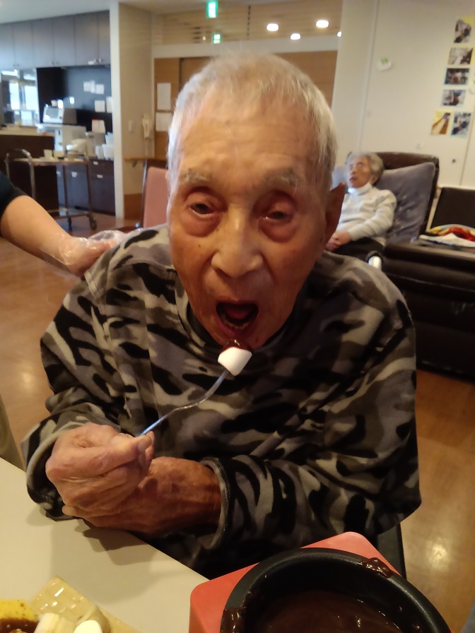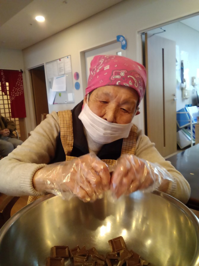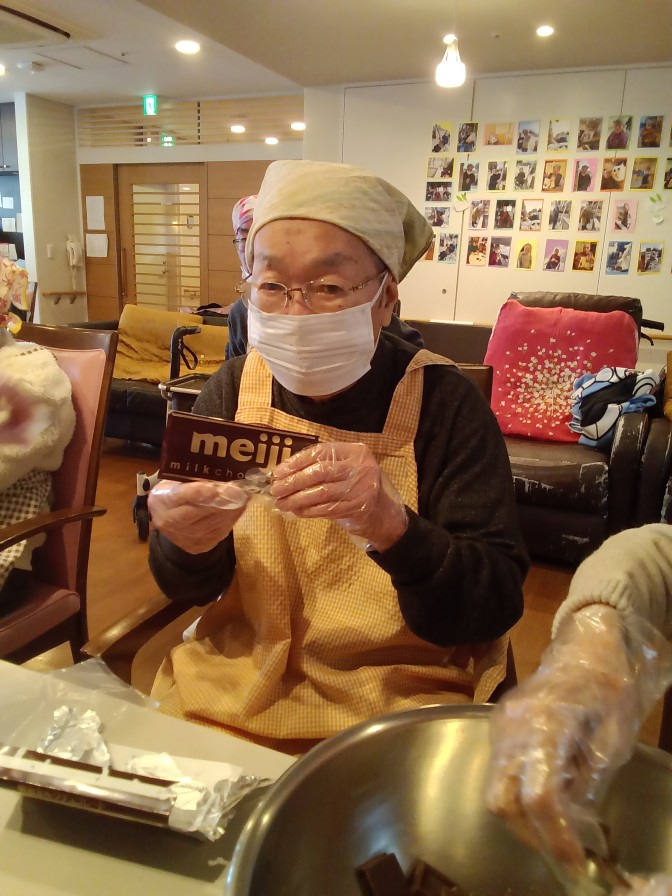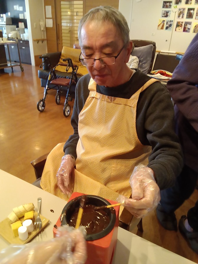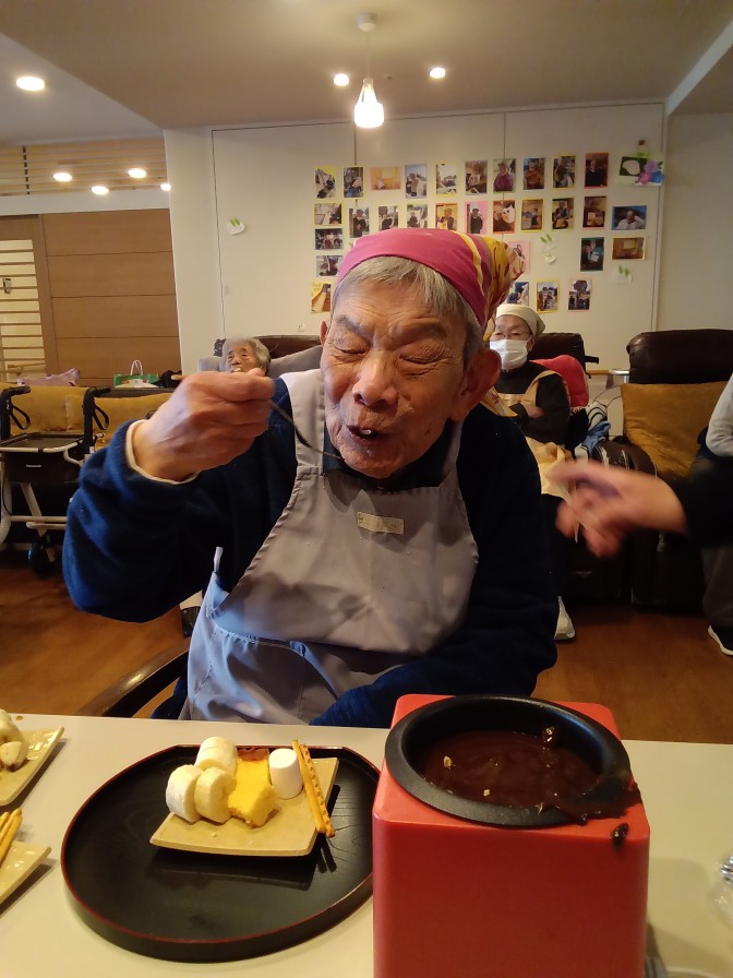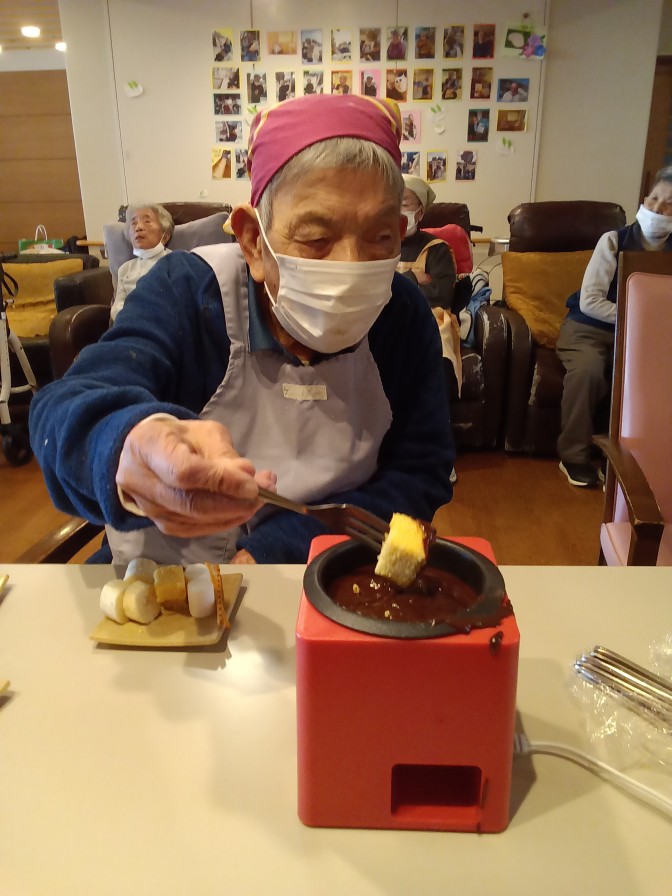 今月はバレンタインデーがあるということで! チョコレートフォンデュ大会を開催しました♡♡♡ 大好きな板チョコ(*^-^*)協力して小さく割っていきます! いざフォンデュ!早く自分の番にならないかな~とそわそわです(*^-^*) 「こんなん初めてや~」 「うまい!!」 幸せな楽しい時間を過ごせました♡ とっても簡単なので定期的にしたいですね(●^o^●)