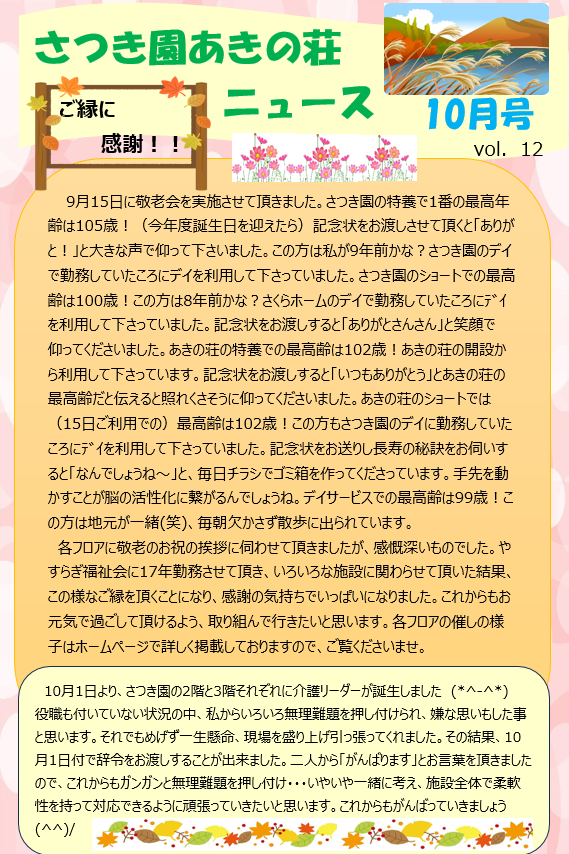 兵庫県神戸市にある地域密着型 高齢者福祉複合施設 さつき園 あきの荘のホームページです。