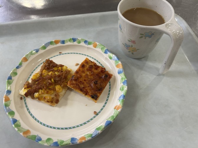完成したピザ!焼き上がりにいい香りがして『なんかいい匂いする!』といち早く反応される方もいらっしゃり、待ちきれませんでした