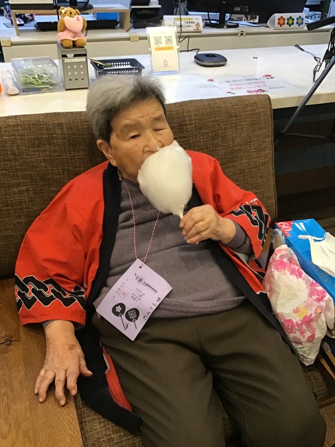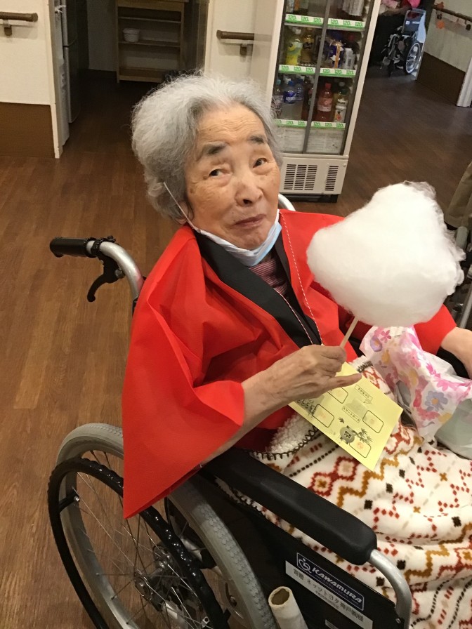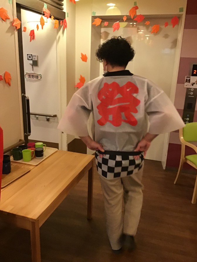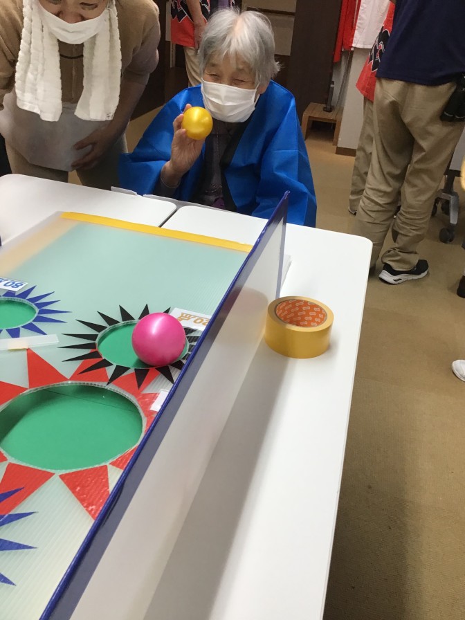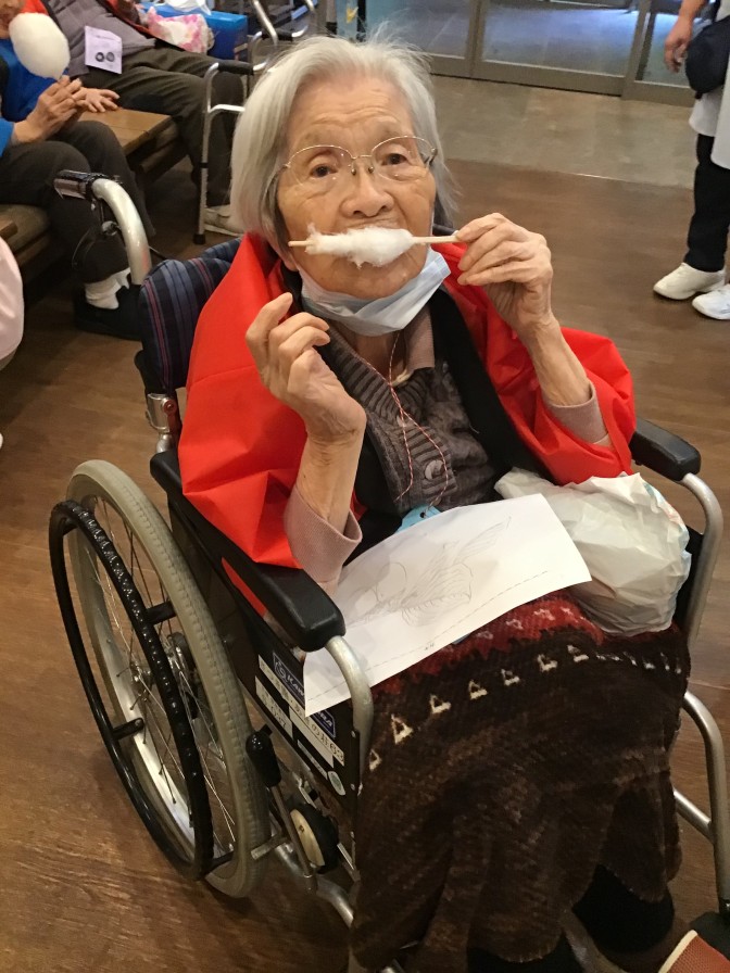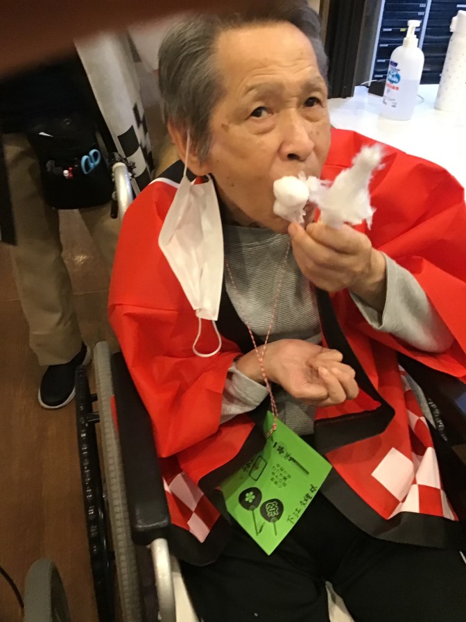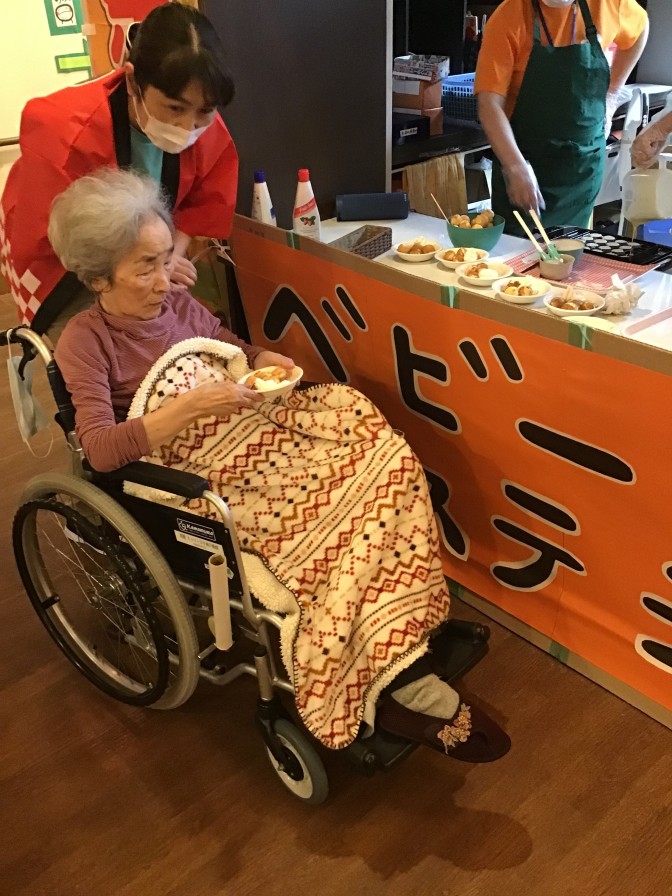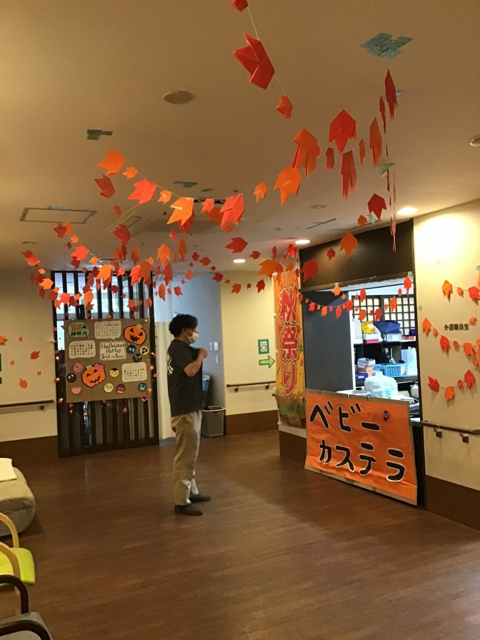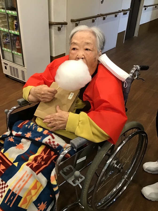 ショートステイの秋祭りは午前のゲーム屋台巡りと、午後からの「ベビーカステラ」屋台です。