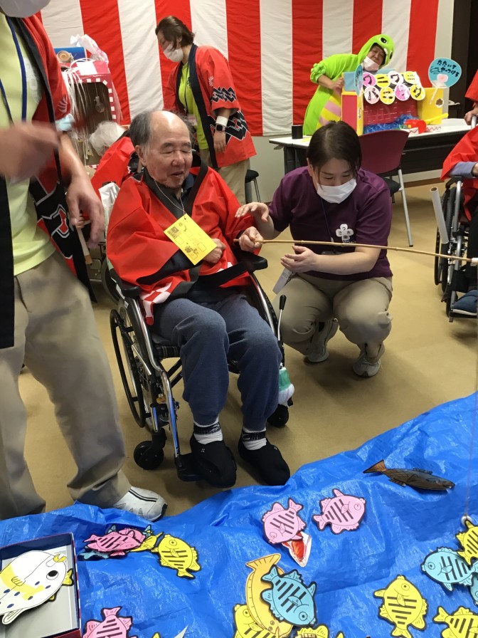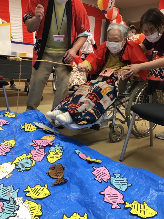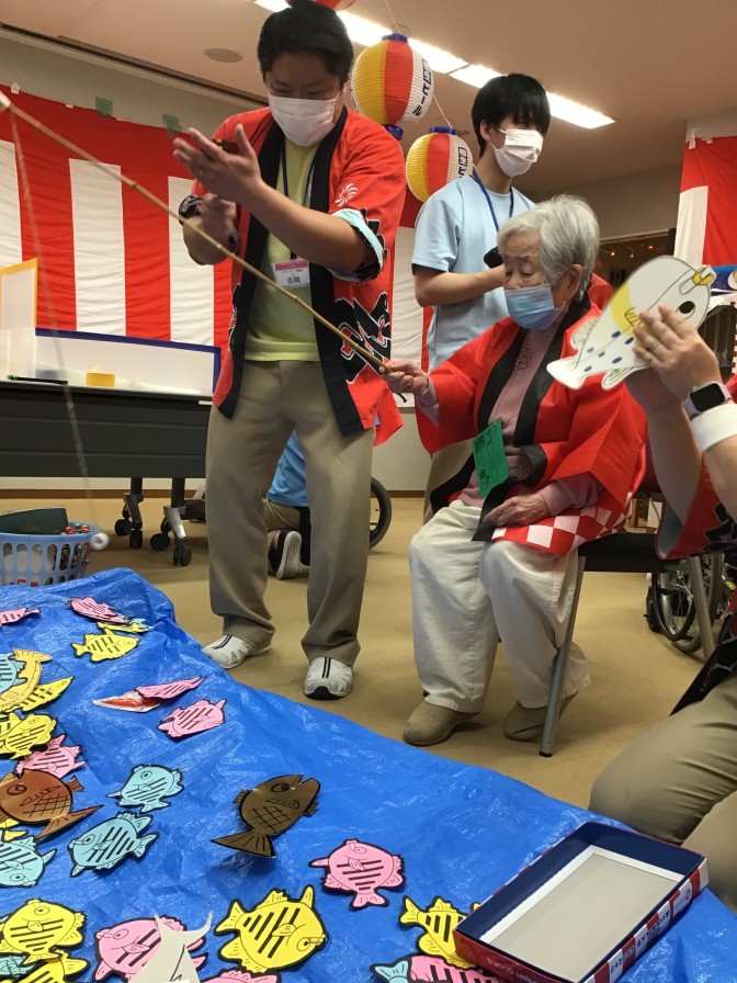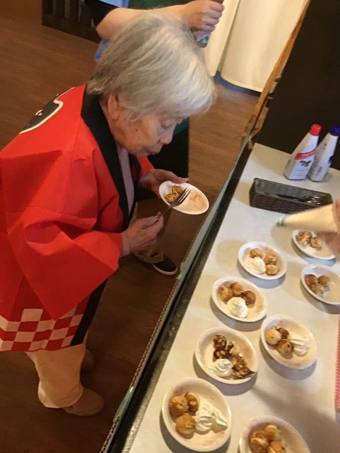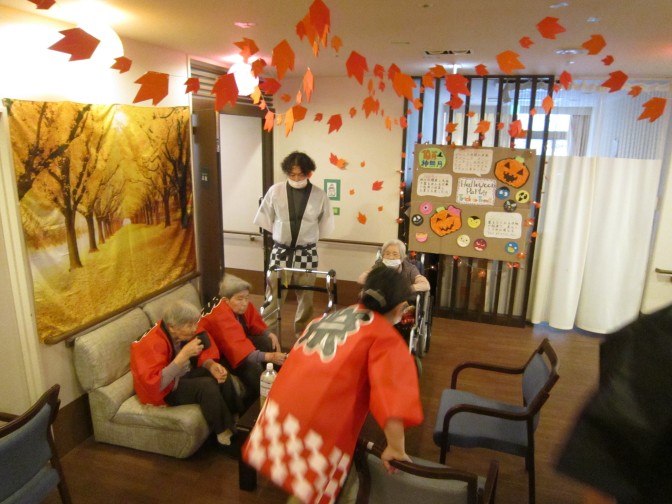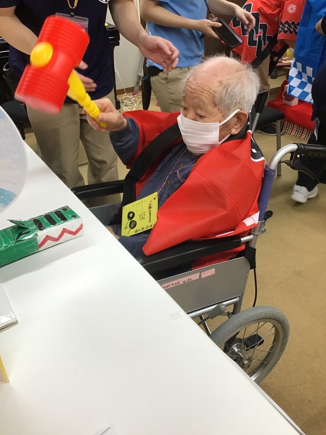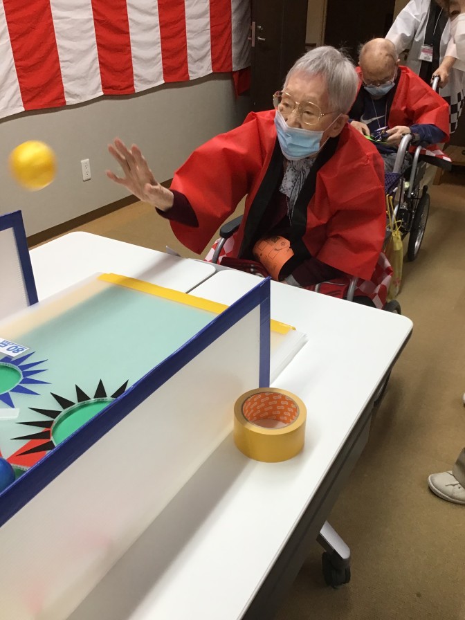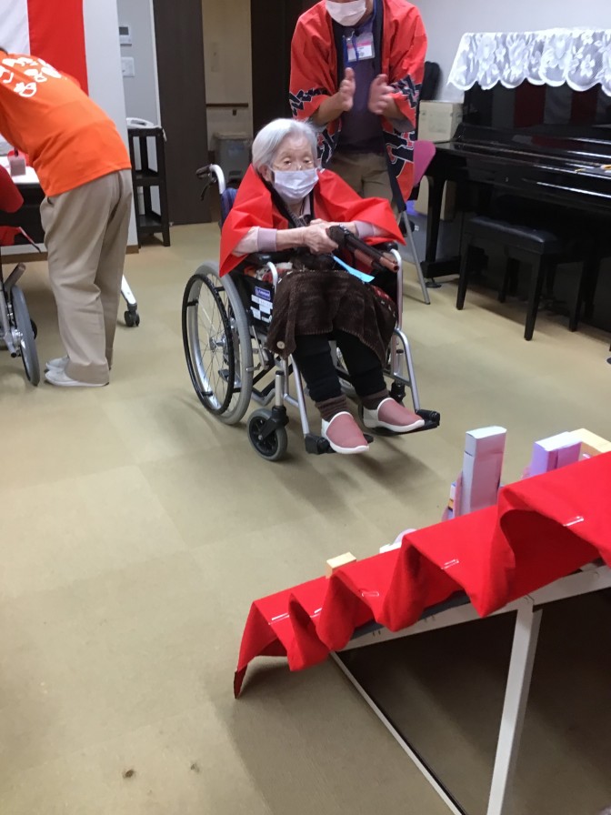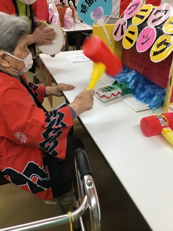 ショートステイの秋祭りは午前のゲーム屋台巡りと、午後からの「ベビーカステラ」屋台です。