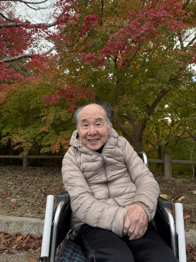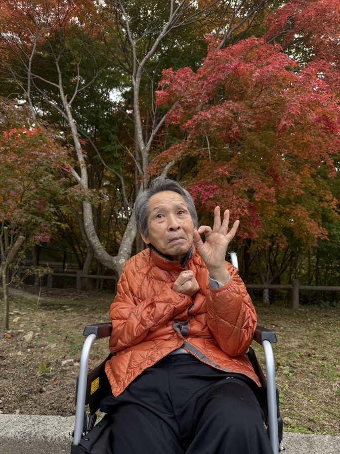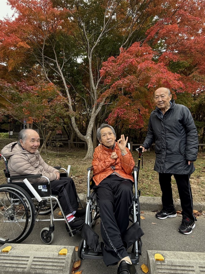 11月15日(土)に職員と一緒に修法ヶ原へ紅葉ドライブに出かけました(*^▽^*)。 天気は良好! 久しぶりの車での外出は、自然と笑顔がこぼれます(*^^*)。 「うわー!」と感動の声も聞かれました。 見事に色づいた木々をゆっくりと眺めました。