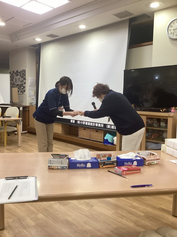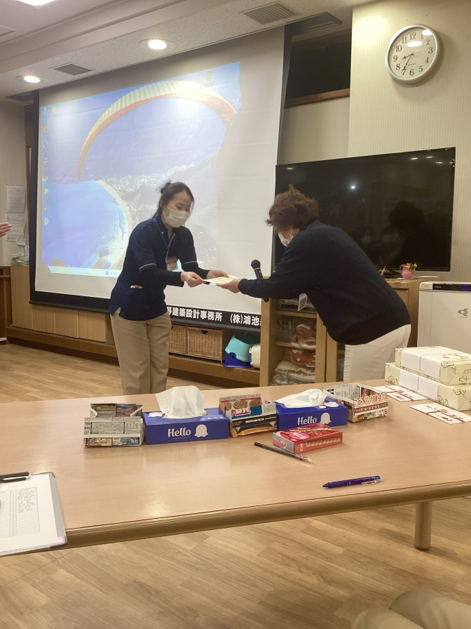 第2位は園長賞! あきの荘ショートステイ ユニット費を活用したご利用者の満足度アップについて発表してくれました。