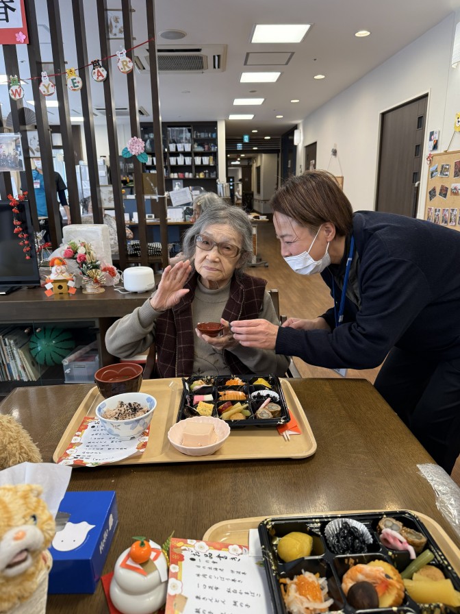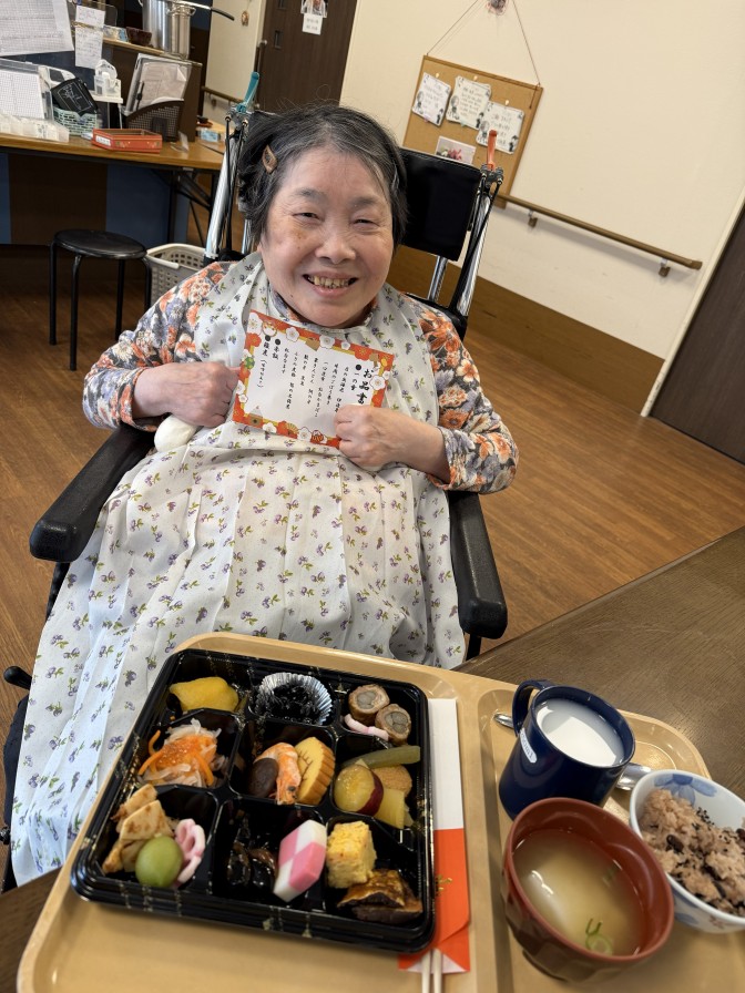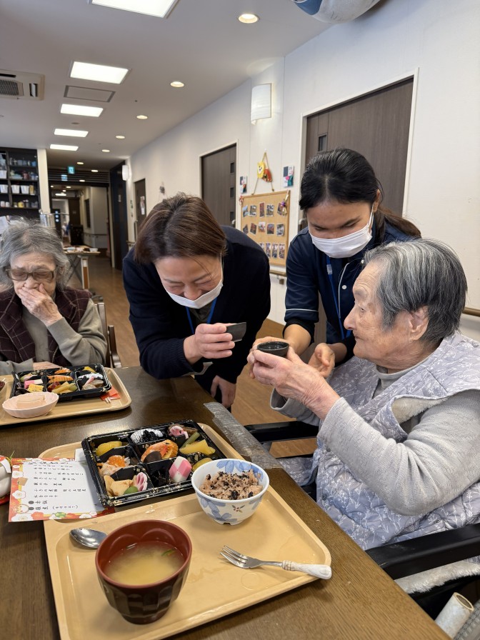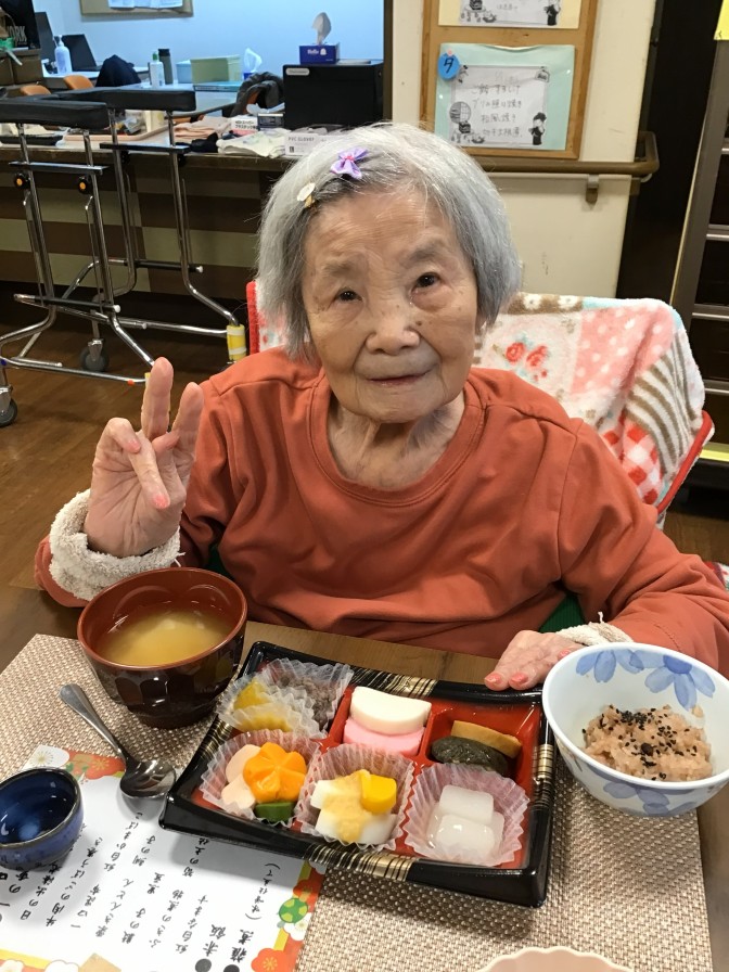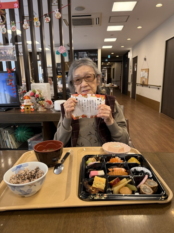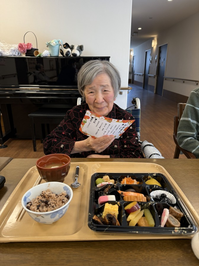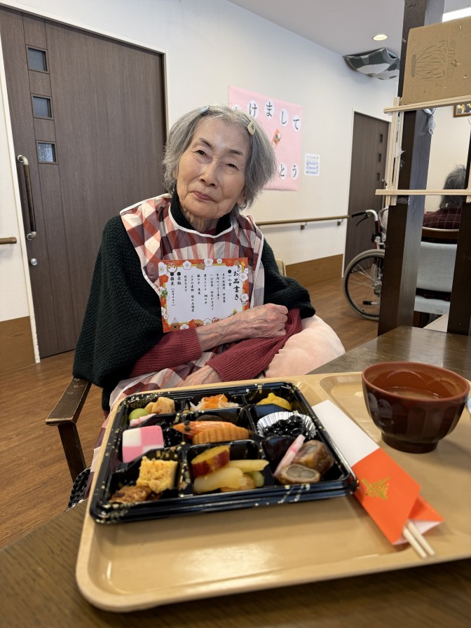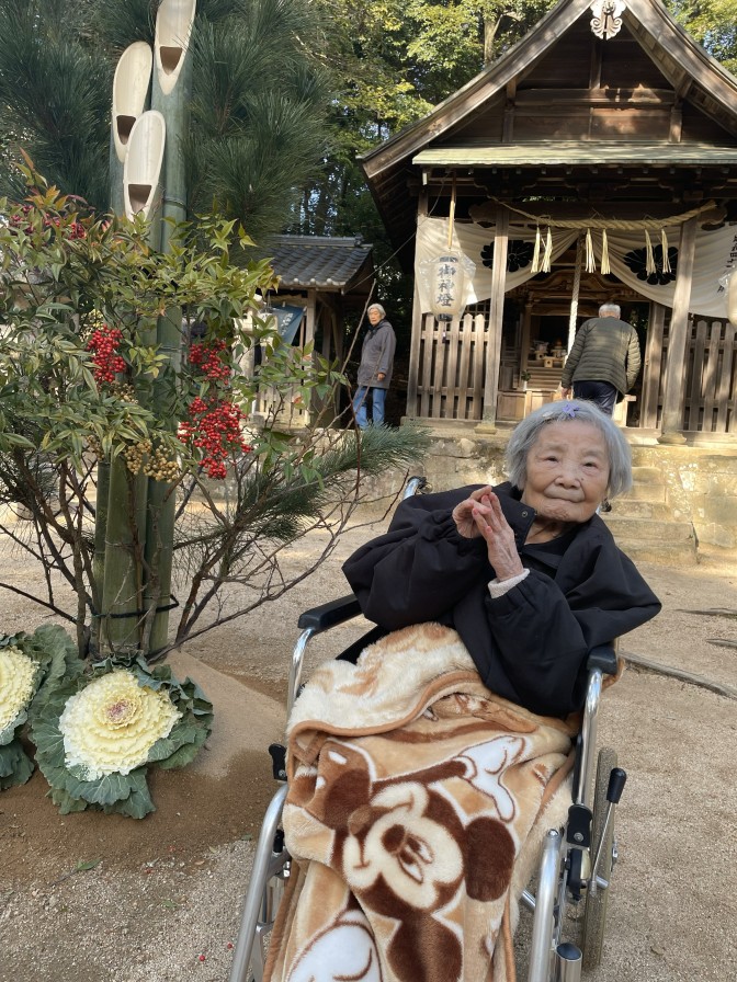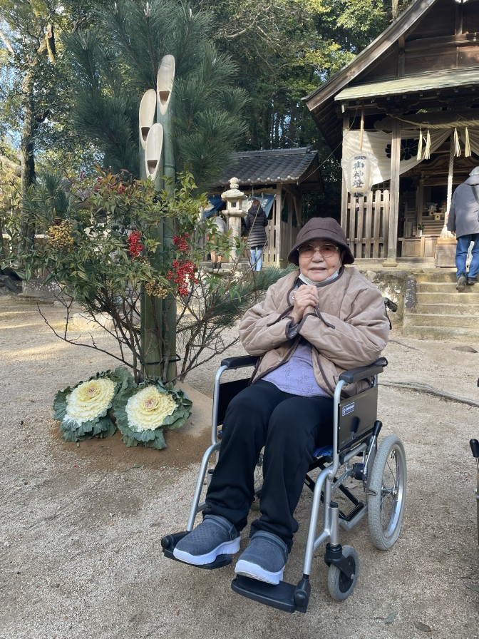 あけましておめでとうございます。 今年も穏やかな、良いお天気の お正月を迎えることができました(^^)/ ご入居者の皆様も美味しいおせち料理を召し上がり 施設長のご挨拶に笑顔になっていただきました。 今年も元気いっぱい楽しい一年になりますように・・・ ~初詣~