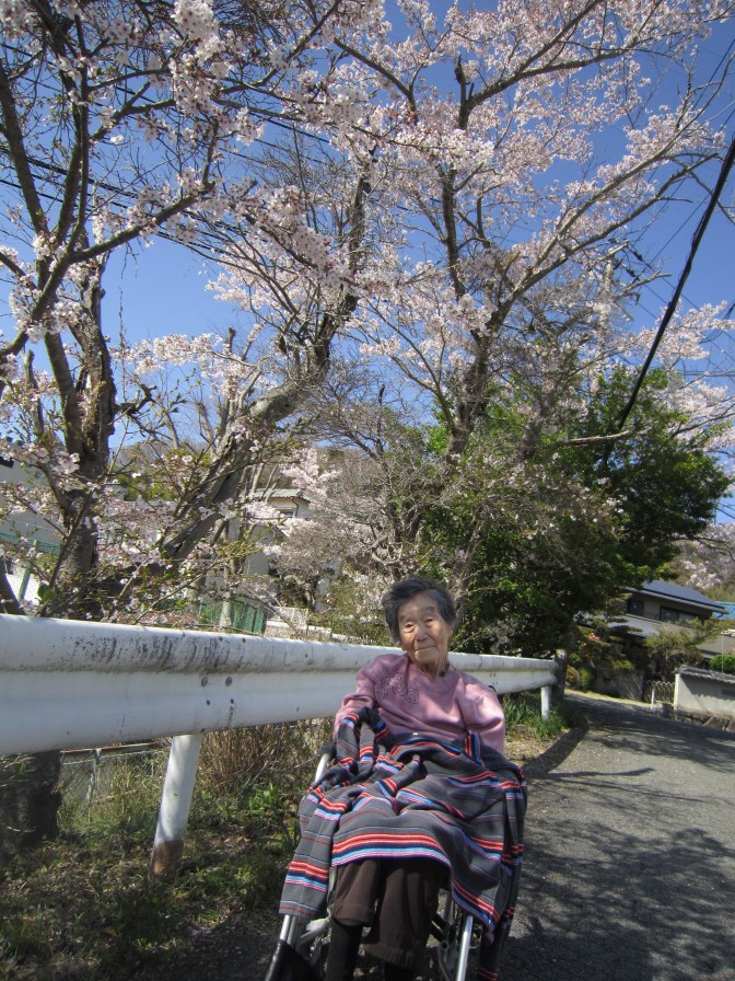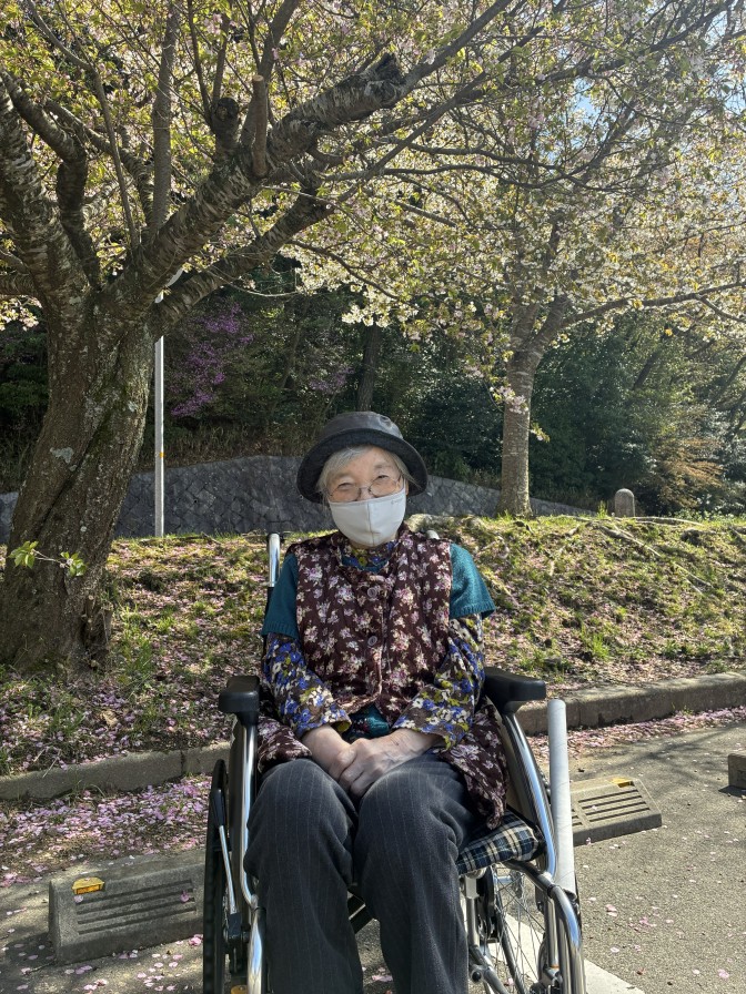 ショートステイでも、天気の良い日にお花見を行いました。
