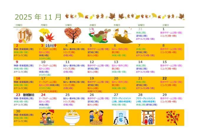 令和7年11月 レクリエーション予定表