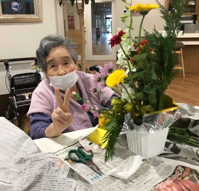 ご利用者、皆様が 楽しみにされている フラワーアレンジメントです (=゜ω゜)ノ これから始まる フラワーアレンジメントに 皆様、真剣な眼差し(^O^)/ ご自慢の綺麗な花(^。^)y-.。o○ 笑顔で楽しまれて おります(*´▽`*) 皆様、個性的で 素敵です( *´艸`) 昔を思い出されたり 今を全力で楽しまれたり ステキな時間をお届け 致しました(*^-^*) ありがとうございました。
