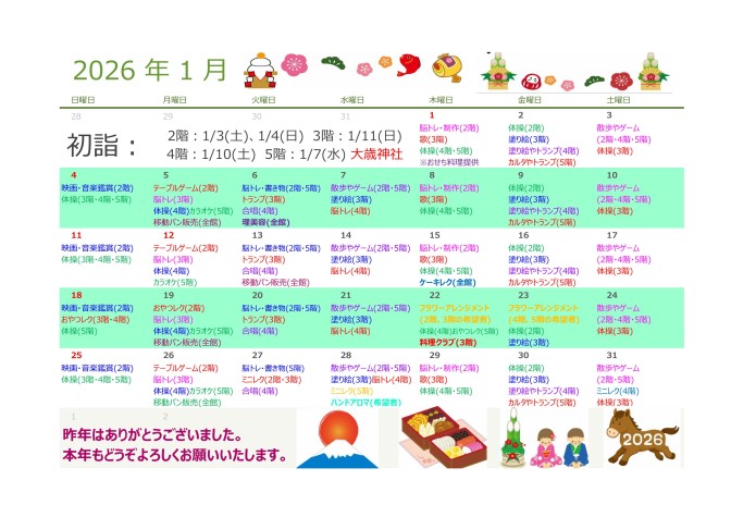 令和8年1月 レクリエーション予定表