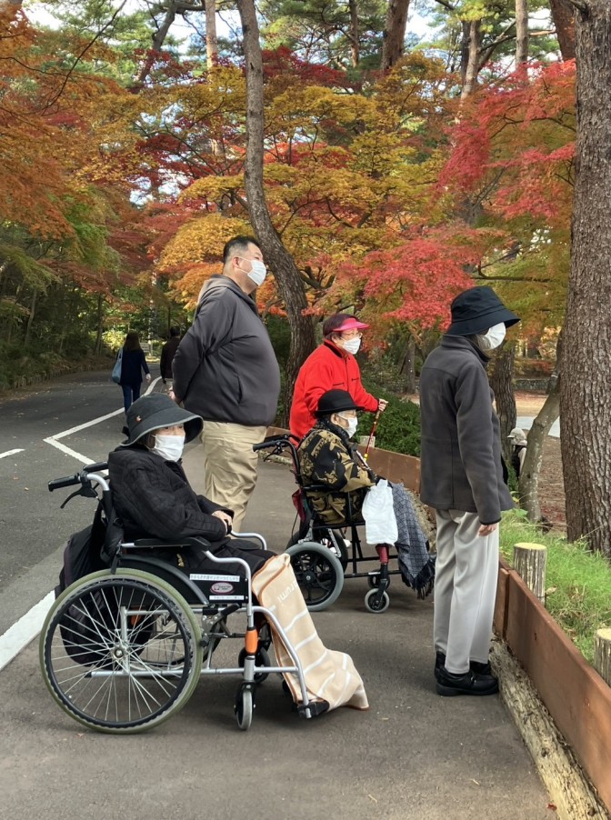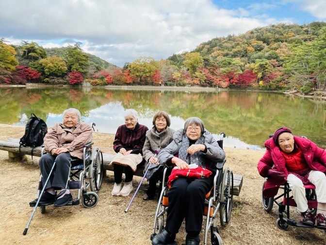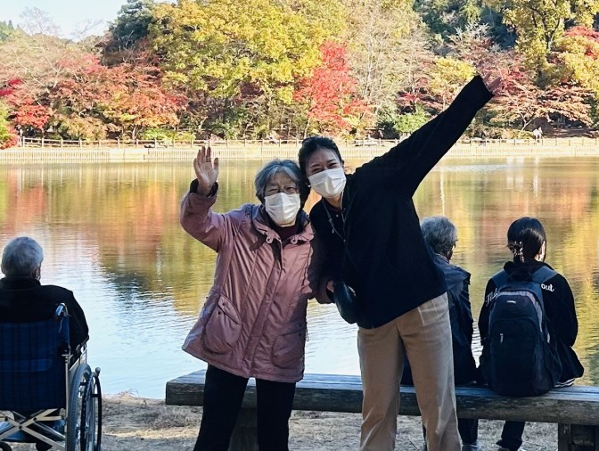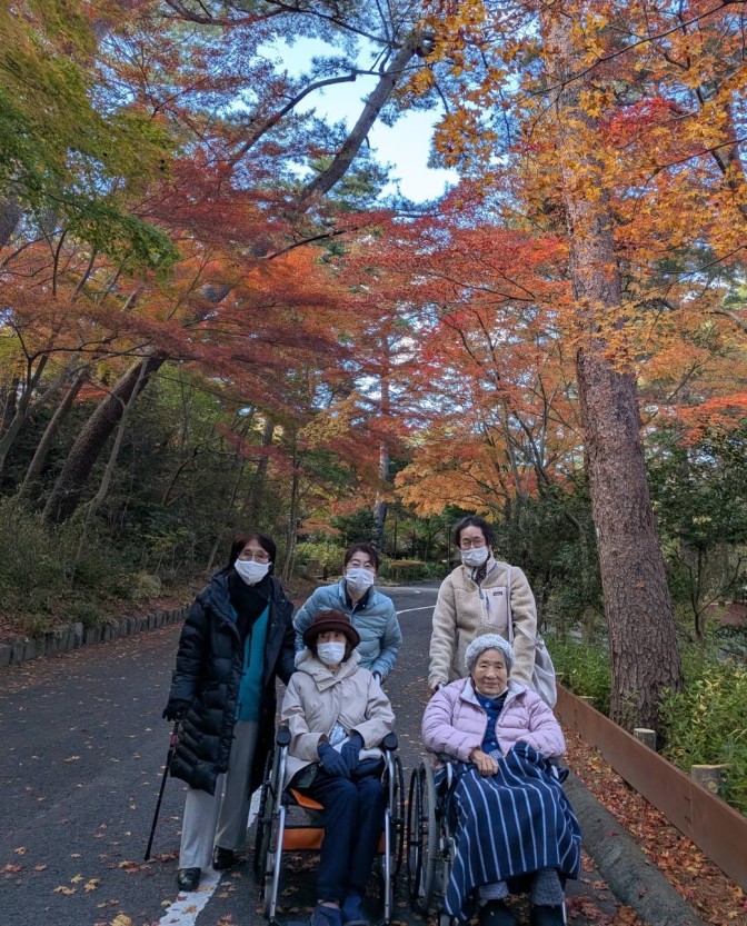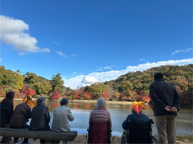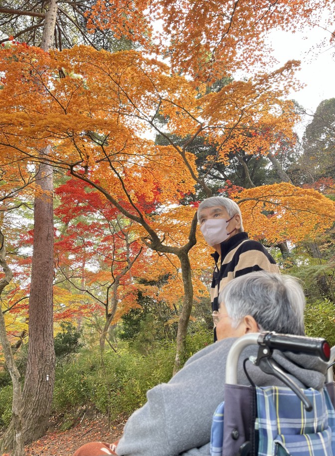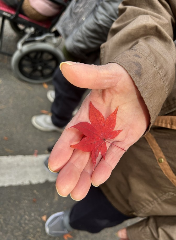 デイサービスに残られた方にも見せてあげたいとモミジの葉を、