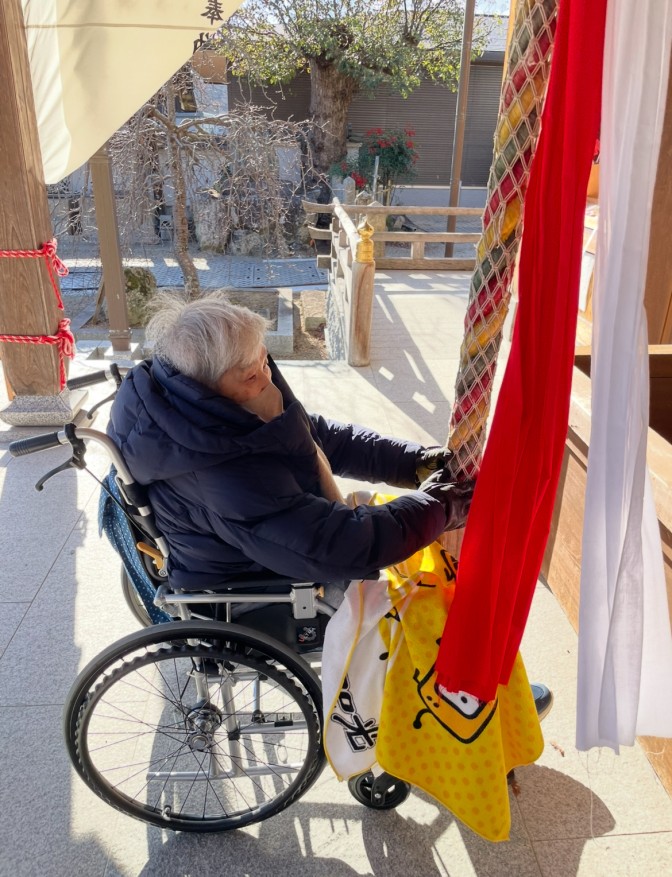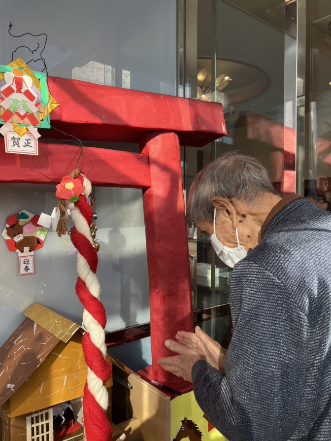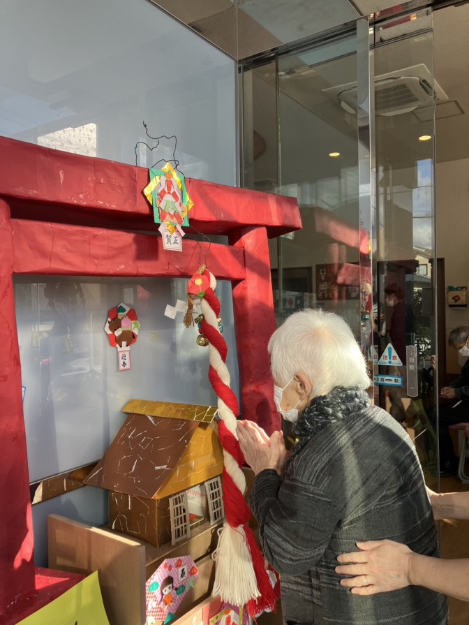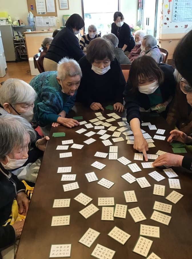 外出を見送られた方もセンターで絵馬を書き、かるた遊びをしたり
